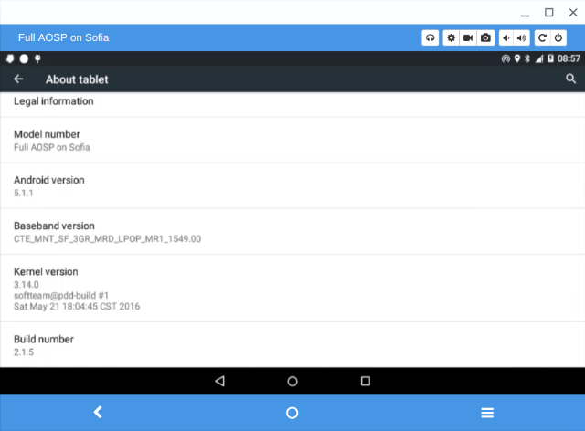 (xenial)zzm@localhost:~$ adb shell getprop | grep 'ro\.build\.' [ro.build.characteristics]: [tablet] [ro.build.date.utc]: [1473825617] [ro.build.date]: [Wed Sep 14 12:00:17 CST 2016] [ro.build.description]: [Sf3gr_mrd6_p2_720-userdebug 5.1.1 LMY47V eng.softteam.20160914.115752 release-keys] [ro.build.display.id]: [2.2.3] [ro.build.fingerprint]: [Intel/Sf3gr_mrd6_p2_720/5.1.1/LMY47V/softteam09141159:userdebug/release-keys] [ro.build.flavor]: [Sf3gr_mrd6_p2_720-userdebug] [ro.build.host]: [pdd-build] [ro.build.id]: [LMY47V] [ro.build.product]: [Sf3gr_mrd6_p2_720] [ro.build.tags]: [release-keys] [ro.build.type]: [userdebug] [ro.build.user]: [softteam] [ro.build.version.all_codenames]: [REL] [ro.build.version.base_os]: [] [ro.build.version.codename]: [REL] [ro.build.version.incremental]: [eng.softteam.20160914.115752] [ro.build.version.release]: [5.1.1] [ro.build.version.sdk]: [22] [ro.build.version.security_patch]: [2015-11-01]